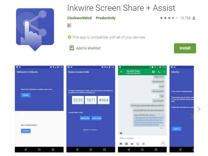 આ એપ એન્ડ્રોઈડના 5.0 વર્ઝન અને તેની ઉપરના તમામ વર્ઝનનાં ડિવાઈસ પર કામ કરે છે. એપ ઓપન કરવા પર શેર અને એક્સેસનો ઓપ્શન જોવા મળશે. શેર પર ક્લિક કરવા પક એક્સેસ કોડ જનરેટ થશે, તેને બીજા ડિવાઈસમાં સબમિટ કરવાનો રહેશે. ત્યારબાદ કન્ટ્રોલર ડિવાઈસ વિક્ટિમ ડિવાઈસની સ્ક્રીન કન્ટ્રોલ કરી શકશે. તેમાં માઈક્રોફોન અનેબલ કરવાનો પણ ઓપ્શન મળે છે.