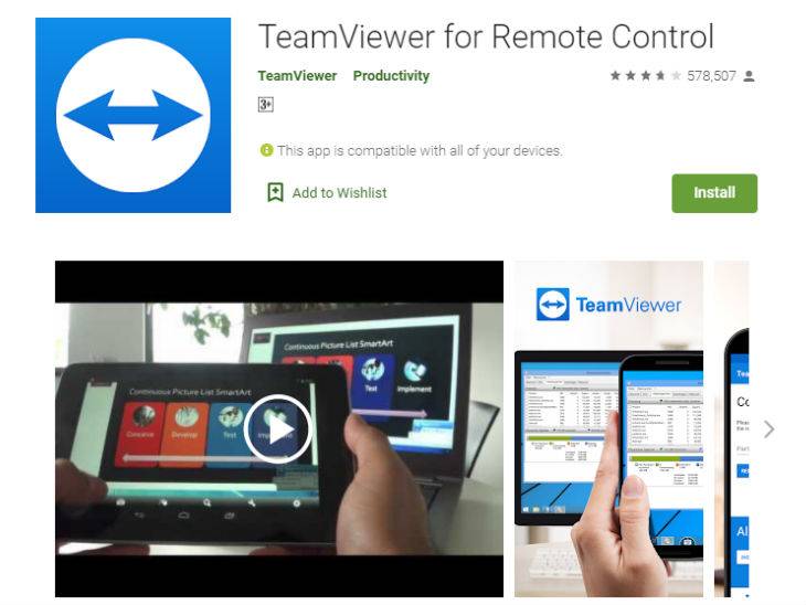 પ્લે સ્ટોર પર આ એપ અવેલેબલ છે. તેને 3.5 સ્ટાર રેટિંગ મળ્યું છે. વિક્ટિમ ડિવાઈસે TeamViewer ક્વિક સપોર્ટ અને કન્ટ્રોલર ડિવાઈસે TeamViewer એપ ઈન્સ્ટોલ્ડ કરવાની રહેશે. ક્વિક એપ ઓપન કર્યા બાદ આઈડી જનરેટર થશે. બીજા ડિવાઈસમાં તે સબમિટ કર્યા બાદ બંને ડિવાઈસ કનેક્ટ થઈ જશે.