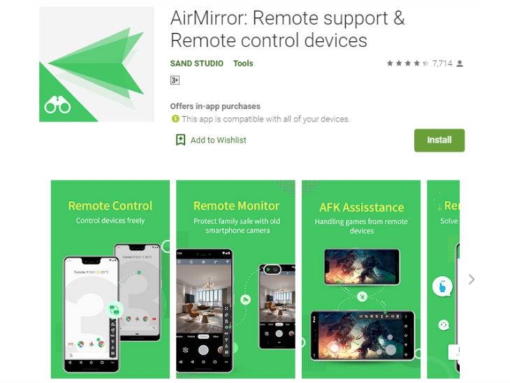 આ એપ પણ પ્લે સ્ટોર પર અવેલેબલ છે તેને 4.5 સ્ટાર રેટિંગ મળ્યું છે. આ એપ થોડી હટકે છે. સ્ક્રીન શેરિંગ માટે બંને ડિવાઈસે અલગ અલગ એપ્સ ઈન્સ્ટોલ્ડ કરવાની રહેશે. વિક્ટિમ ડિવાઈસે એરમિર એપ ઈન્સ્ટોલ્ડ કરવાની રહેશે તો કન્ટ્રોલર ડિવાઈસે એરડ્રોઈડ એપ ઈન્સ્ટોલ કરવાની રહેશે. સાઈન અપ/ સાઈન ઈનની પ્રોસેસ પૂરી કર્યા બાદ એકબીજાના ડિવાઈસનું નામ જોઈ શકાશે. કન્ટ્રોલ, કેમેરા અને સ્ક્રીન મિરરિંગમાંથી કોઈ 1 ઓપ્શનની પસંદગી કરવાની રહેશે.